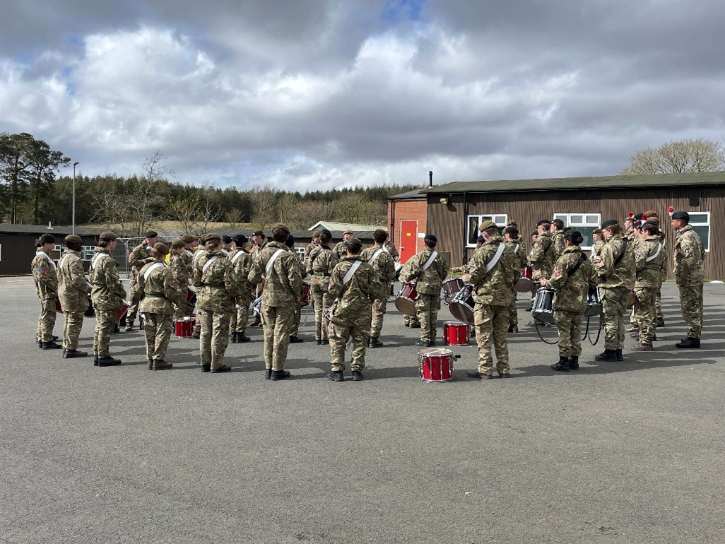 Cadets from Ash Manor School CCF recently had the opportunity to attend the National Spring Music Camp held at Otterburn Training Camp, near Newcastle. Sgt Sisson and four members of the Corps of Drums (CoD) took part in their first national-level camp, joining over 400 cadets and 150 Cadet Force Adult Volunteers (CFAVs) from across all four nations of the UK.