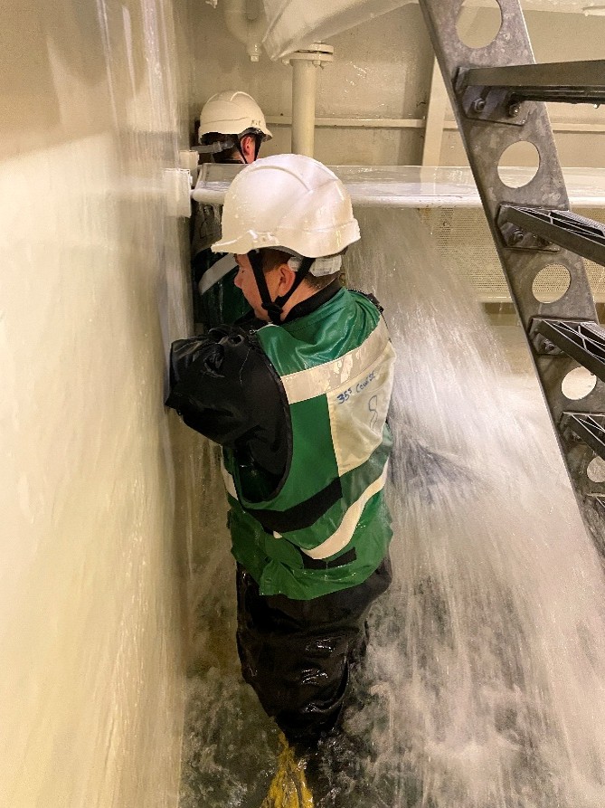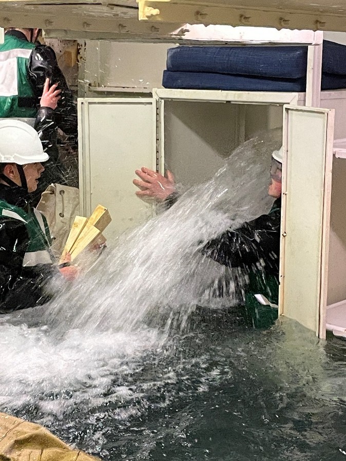 Following lunch, the focus shifted to damage control, with cadets learning how to respond if a vessel’s hull is breached and begins taking on water. They then put these skills into action aboard the DRIU Hazard (Damage Repair Instruction Unit), working together in a realistic simulator environment to stem the rising water levels. Using teamwork, quick thinking and their newly developed skills, the cadets successfully managed the scenario, making for an engaging and memorable day of practical learning.